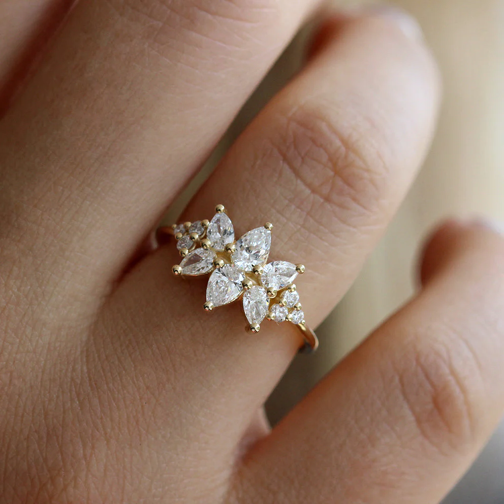 Cluster Ring Set With Diamonds - VS Diamond Ring - Flora