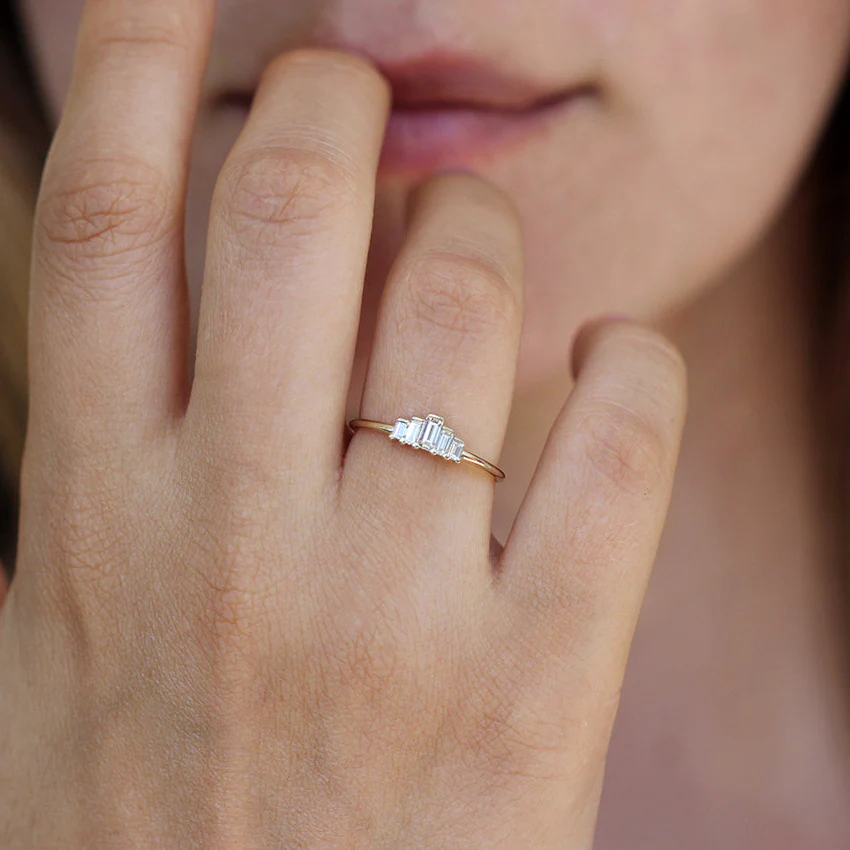 Five baguette diamonds engagement ring.