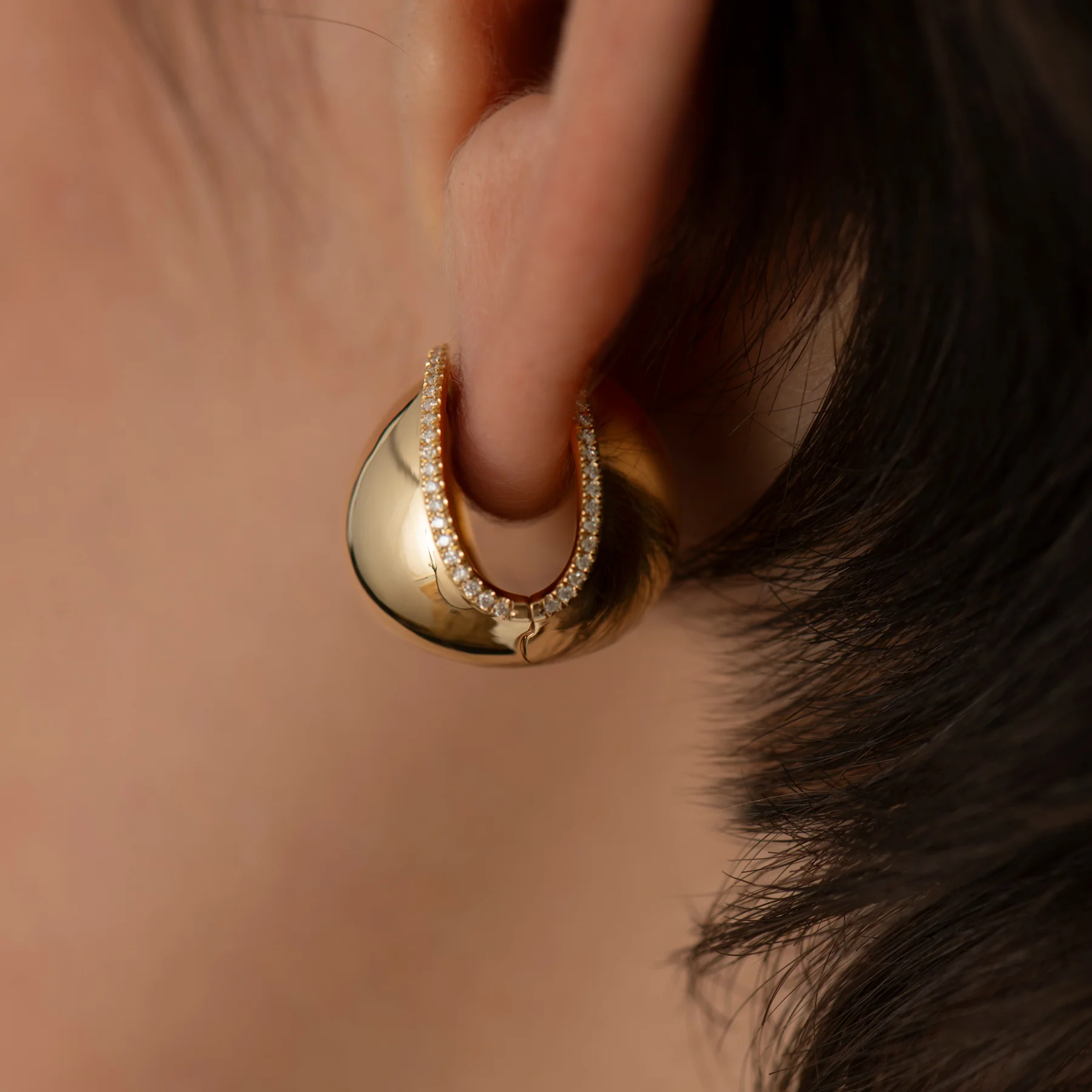 The Gold & Diamond Moon Ball Earrings are handcrafted in our studio from 18K gold. In this design, a glowing ball made of shiny polished gold packs a bold and edgy punch while brilliant white diamonds trace the upper curve of the sphere. Whether worn with jeans and a crisp white T-shirt or a magnificent gown, these earrings add a bold and playful element to any look.