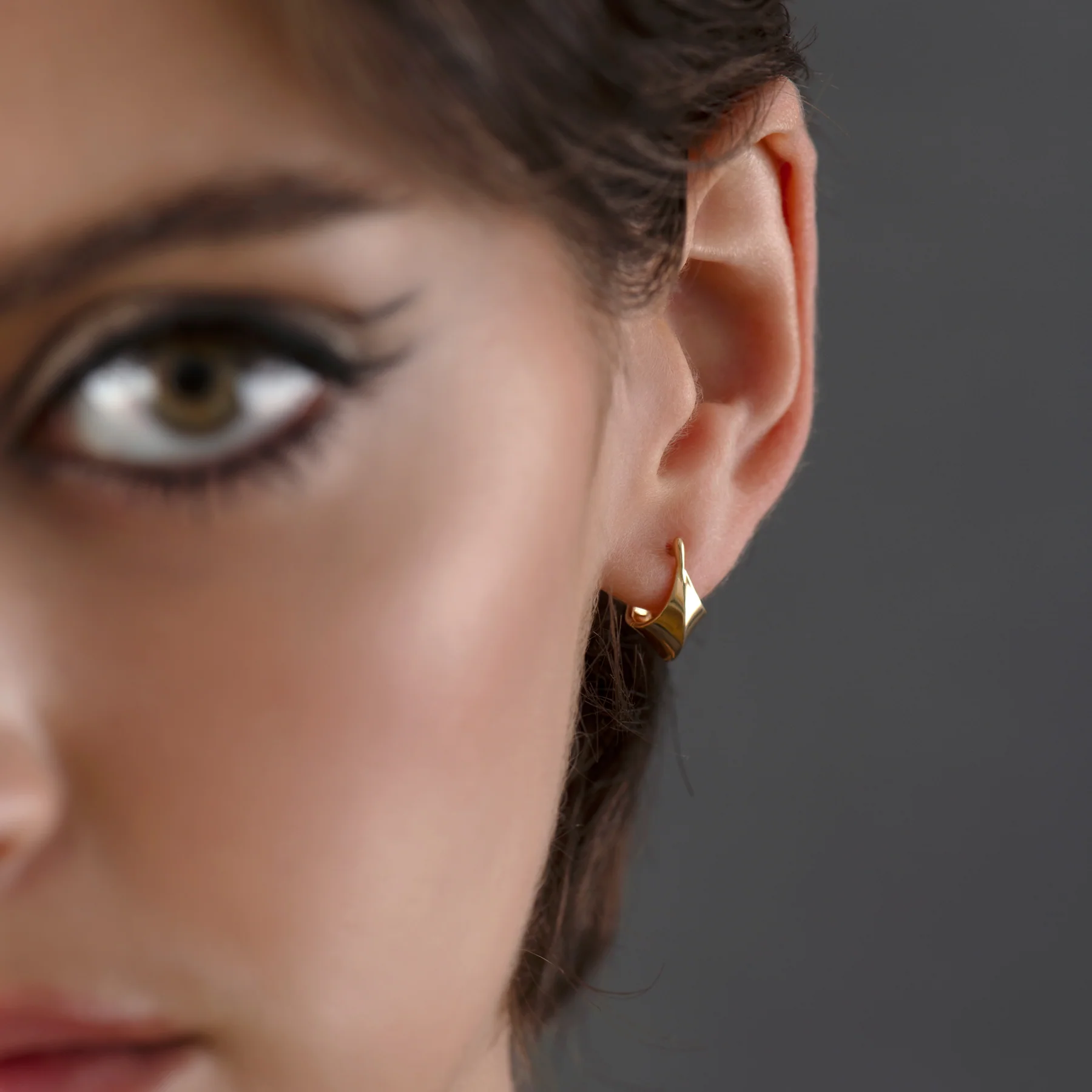 The Gold Edgy Huggie Earrings are handcrafted in our studio from 18K gold. Smooth, polished gold hugs the lobe giving the appearance it's made of gold. The tipped point at the end adds a touch of edge.