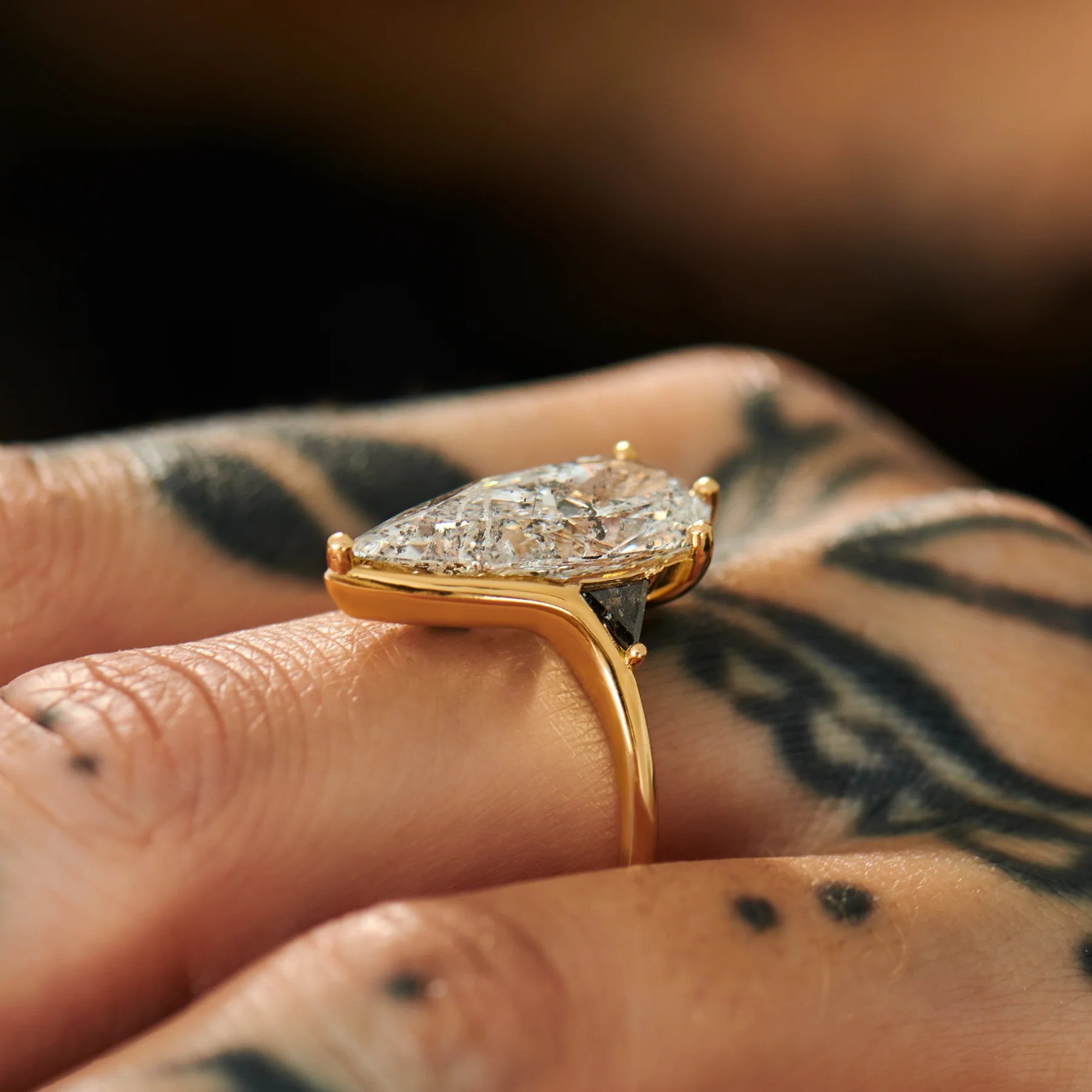 18k solid gold | Pear Salt & Pepper Diamond | Trillion Salt & Pepper Diamonds