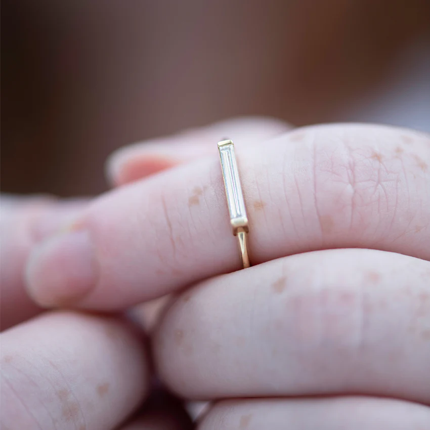 Minimalist Diamond Ring - Long Baguette Solitaire Ring - OOAK