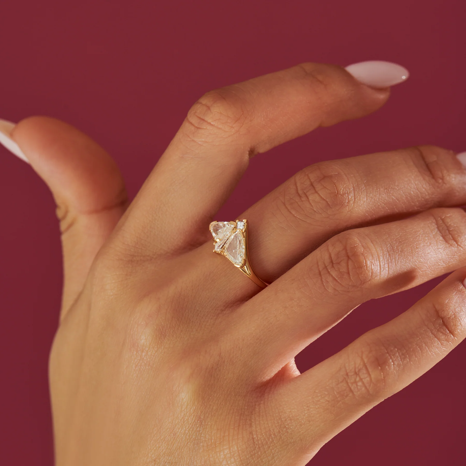 Moth Diamond Engagement Ring with Modified Trillion and Kite
