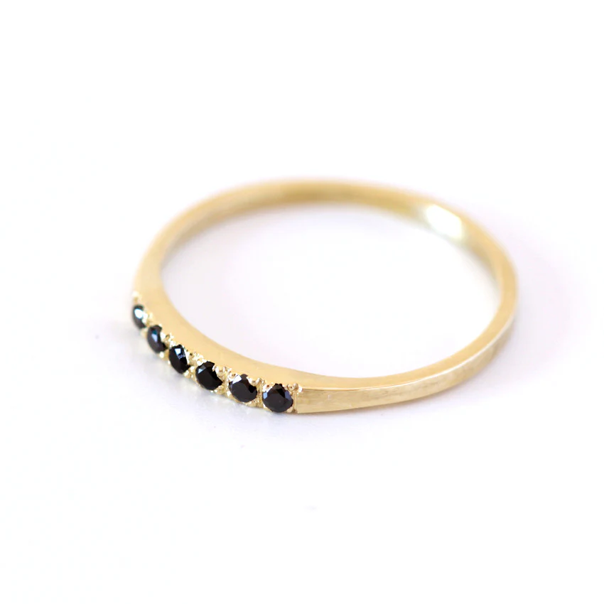 Dainty black diamond ring with six 1.5 mm diamonds in 18k soild gold.