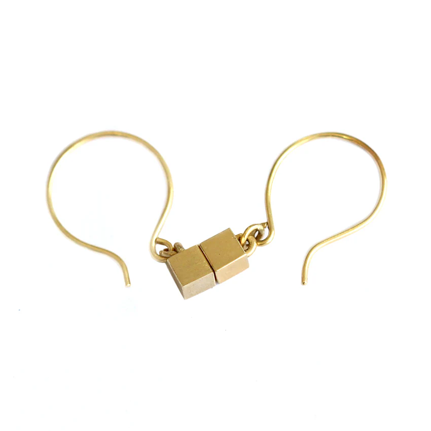Tiny Cube Gold Earrings - Geometric Ear Piece